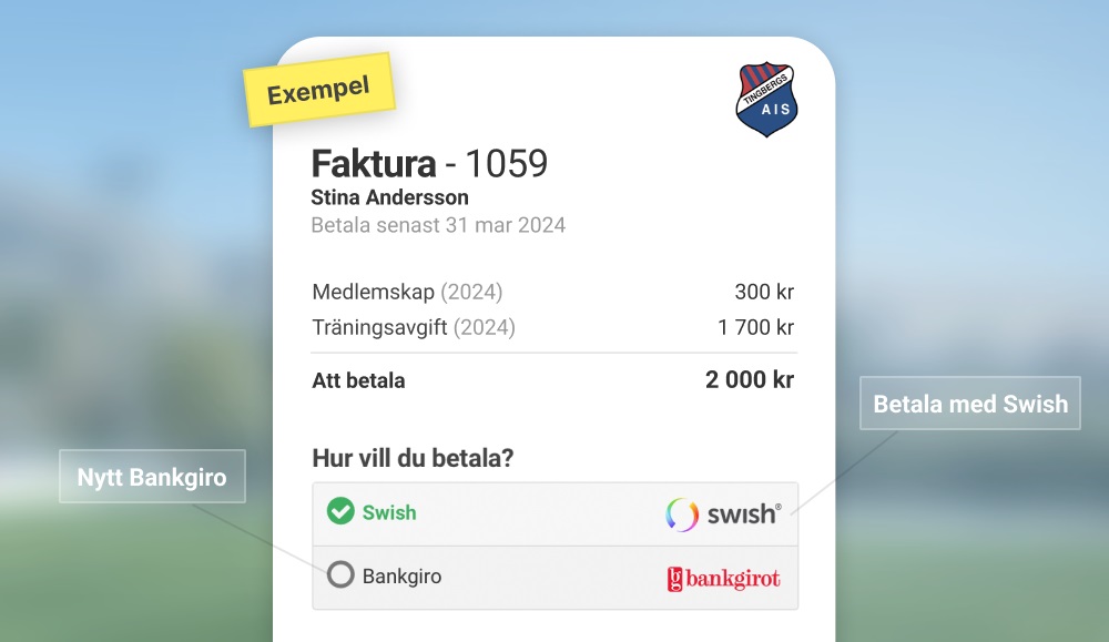 Vi har nämligen ett nytt Bankgiro på alla fakturor som skickas via Svenskalag. Om du öppnar din faktura på datorn eller i mobilen kan du även betala den med Swish.